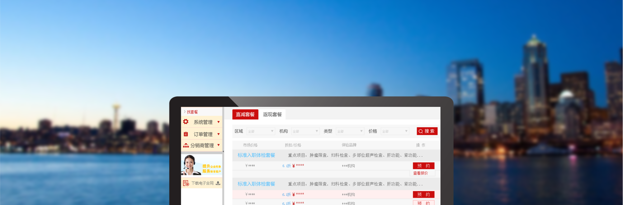 覆蓋全國的體檢資源,定制方便,落單系統(tǒng)功能強大方便,多平臺一體,終于能將業(yè)務(wù)推廣至全國。